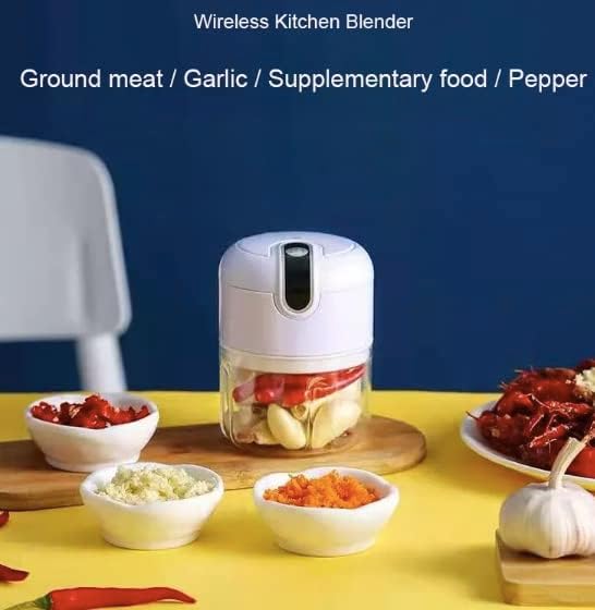 Portable Vegetable Chopper 250ml, Wireless Mini Chopper for Kitchen, Garlic Mincer Food Processor for Chopping and Slicing Onion Ginger Veggies Spice Baby Food, USB Rechargeable
